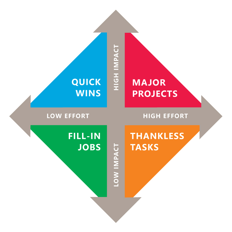 - Major Projects are worthwhile but take extra time and resources, so don’t tackle too many of these projects at one time and consider whether any elements could be scaled down to reduce effort.